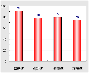 環境運 家庭や職場等での援助運・環境運を司ります。これが良いと配偶者や子供・職場の同僚などから助力が得られやすく、悪いと波乱・不和・孤独などがあります。 75点