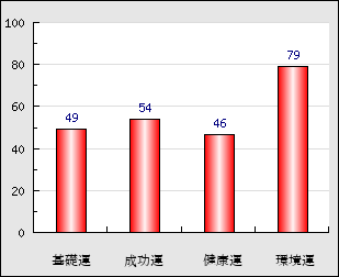 環境運 家庭や職場等での援助運・環境運を司ります。これが良いと配偶者や子供・職場の同僚などから助力が得られやすく、悪いと波乱・不和・孤独などがあります。 79点