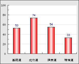 成功運 目的に対する成功運の強さをあらわします。この点数が高いほど自分の思い通りに成功し、逆に悪いと逆境・批判・障害などに苦心します。 74点
