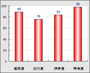 環境運 家庭や職場等での援助運・環境運を司ります。これが良いと配偶者や子供・職場の同僚などから助力が得られやすく、悪いと波乱・不和・孤独などがあります。 98点
