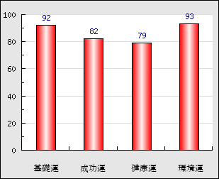 環境運 家庭や職場等での援助運・環境運を司ります。これが良いと配偶者や子供・職場の同僚などから助力が得られやすく、悪いと波乱・不和・孤独などがあります。 93点