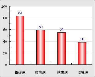 環境運 家庭や職場等での援助運・環境運を司ります。これが良いと配偶者や子供・職場の同僚などから助力が得られやすく、悪いと波乱・不和・孤独などがあります。 38点