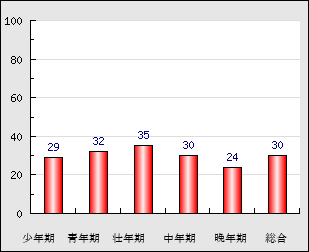 | 中年期 | 50~65歳頃 | 30点 0.0 |