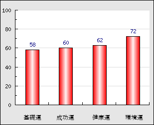 成功運 目的に対する成功運の強さをあらわします。この点数が高いほど自分の思い通りに成功し、逆に悪いと逆境・批判・障害などに苦心します。 60点