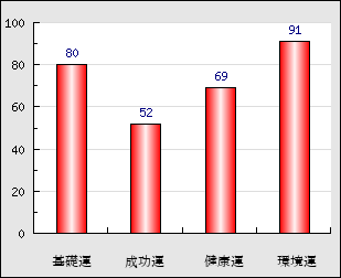 環境運 家庭や職場等での援助運・環境運を司ります。これが良いと配偶者や子供・職場の同僚などから助力が得られやすく、悪いと波乱・不和・孤独などがあります。 91点