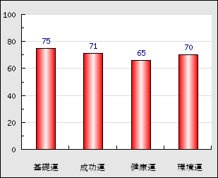 成功運 目的に対する成功運の強さをあらわします。この点数が高いほど自分の思い通りに成功し、逆に悪いと逆境・批判・障害などに苦心します。 71点