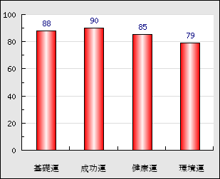 成功運 目的に対する成功運の強さをあらわします。この点数が高いほど自分の思い通りに成功し、逆に悪いと逆境・批判・障害などに苦心します。 90点