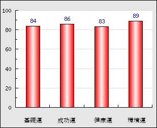 環境運 家庭や職場等での援助運・環境運を司ります。これが良いと配偶者や子供・職場の同僚などから助力が得られやすく、悪いと波乱・不和・孤独などがあります。 89点