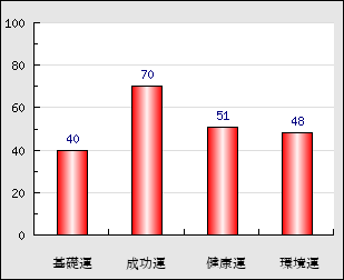 成功運 目的に対する成功運の強さをあらわします。この点数が高いほど自分の思い通りに成功し、逆に悪いと逆境・批判・障害などに苦心します。 70点