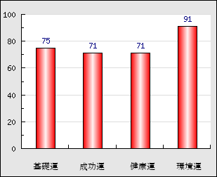 環境運 家庭や職場等での援助運・環境運を司ります。これが良いと配偶者や子供・職場の同僚などから助力が得られやすく、悪いと波乱・不和・孤独などがあります。 91点