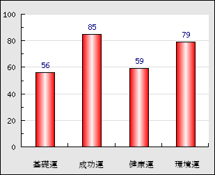 成功運 目的に対する成功運の強さをあらわします。この点数が高いほど自分の思い通りに成功し、逆に悪いと逆境・批判・障害などに苦心します。 85点
