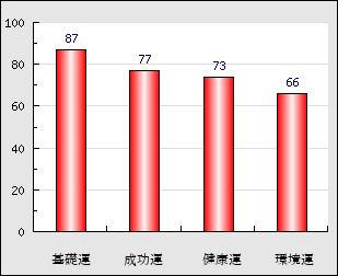 環境運 家庭や職場等での援助運・環境運を司ります。これが良いと配偶者や子供・職場の同僚などから助力が得られやすく、悪いと波乱・不和・孤独などがあります。 66点