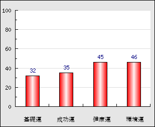 環境運 家庭や職場等での援助運・環境運を司ります。これが良いと配偶者や子供・職場の同僚などから助力が得られやすく、悪いと波乱・不和・孤独などがあります。 46点
