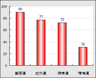 環境運 家庭や職場等での援助運・環境運を司ります。これが良いと配偶者や子供・職場の同僚などから助力が得られやすく、悪いと波乱・不和・孤独などがあります。 31点