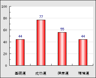 成功運 目的に対する成功運の強さをあらわします。この点数が高いほど自分の思い通りに成功し、逆に悪いと逆境・批判・障害などに苦心します。 77点
