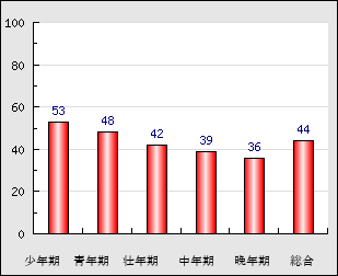 | 晩年期 | 65歳~ | 51.6点- 4.4 |
