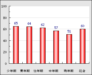 | 壮年期 | 35~50歳頃 | 67.1点+ 1.5 |