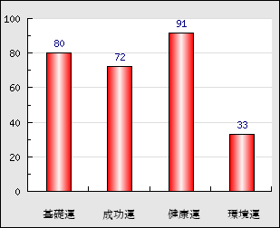 環境運 家庭や職場等での援助運・環境運を司ります。これが良いと配偶者や子供・職場の同僚などから助力が得られやすく、悪いと波乱・不和・孤独などがあります。 33点