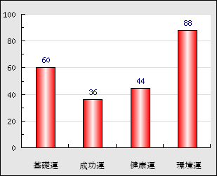環境運 家庭や職場等での援助運・環境運を司ります。これが良いと配偶者や子供・職場の同僚などから助力が得られやすく、悪いと波乱・不和・孤独などがあります。 88点