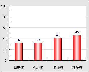環境運 家庭や職場等での援助運・環境運を司ります。これが良いと配偶者や子供・職場の同僚などから助力が得られやすく、悪いと波乱・不和・孤独などがあります。 46点