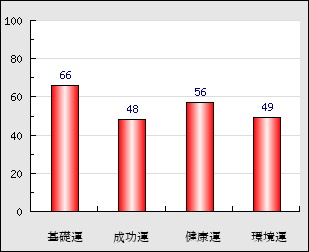 環境運 家庭や職場等での援助運・環境運を司ります。これが良いと配偶者や子供・職場の同僚などから助力が得られやすく、悪いと波乱・不和・孤独などがあります。 49点