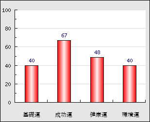 環境運 家庭や職場等での援助運・環境運を司ります。これが良いと配偶者や子供・職場の同僚などから助力が得られやすく、悪いと波乱・不和・孤独などがあります。 40点