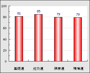 成功運 目的に対する成功運の強さをあらわします。この点数が高いほど自分の思い通りに成功し、逆に悪いと逆境・批判・障害などに苦心します。 85点