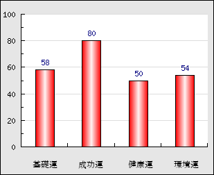 成功運 目的に対する成功運の強さをあらわします。この点数が高いほど自分の思い通りに成功し、逆に悪いと逆境・批判・障害などに苦心します。 80点
