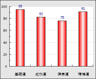 環境運 家庭や職場等での援助運・環境運を司ります。これが良いと配偶者や子供・職場の同僚などから助力が得られやすく、悪いと波乱・不和・孤独などがあります。 91点