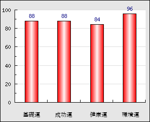 環境運 家庭や職場等での援助運・環境運を司ります。これが良いと配偶者や子供・職場の同僚などから助力が得られやすく、悪いと波乱・不和・孤独などがあります。 96点