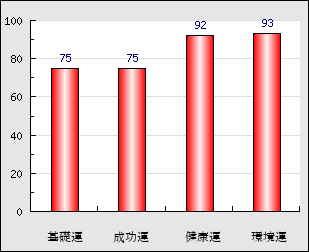 環境運 家庭や職場等での援助運・環境運を司ります。これが良いと配偶者や子供・職場の同僚などから助力が得られやすく、悪いと波乱・不和・孤独などがあります。 93点