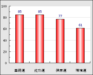 環境運 家庭や職場等での援助運・環境運を司ります。これが良いと配偶者や子供・職場の同僚などから助力が得られやすく、悪いと波乱・不和・孤独などがあります。 61点