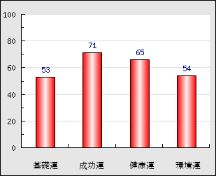 成功運 目的に対する成功運の強さをあらわします。この点数が高いほど自分の思い通りに成功し、逆に悪いと逆境・批判・障害などに苦心します。 71点