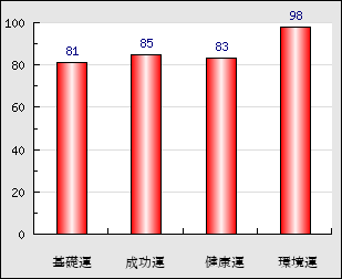 環境運 家庭や職場等での援助運・環境運を司ります。これが良いと配偶者や子供・職場の同僚などから助力が得られやすく、悪いと波乱・不和・孤独などがあります。 98点