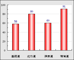 成功運 目的に対する成功運の強さをあらわします。この点数が高いほど自分の思い通りに成功し、逆に悪いと逆境・批判・障害などに苦心します。 80点