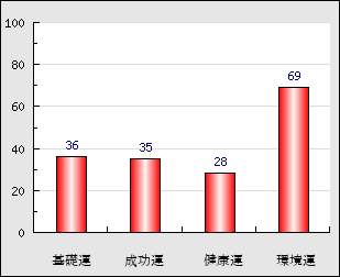 環境運 家庭や職場等での援助運・環境運を司ります。これが良いと配偶者や子供・職場の同僚などから助力が得られやすく、悪いと波乱・不和・孤独などがあります。 69点