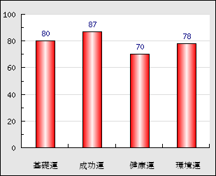 環境運 家庭や職場等での援助運・環境運を司ります。これが良いと配偶者や子供・職場の同僚などから助力が得られやすく、悪いと波乱・不和・孤独などがあります。 78点