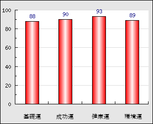 成功運 目的に対する成功運の強さをあらわします。この点数が高いほど自分の思い通りに成功し、逆に悪いと逆境・批判・障害などに苦心します。 90点