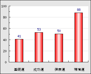 環境運 家庭や職場等での援助運・環境運を司ります。これが良いと配偶者や子供・職場の同僚などから助力が得られやすく、悪いと波乱・不和・孤独などがあります。 88点