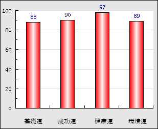 環境運 家庭や職場等での援助運・環境運を司ります。これが良いと配偶者や子供・職場の同僚などから助力が得られやすく、悪いと波乱・不和・孤独などがあります。 89点