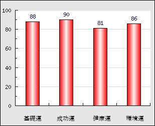 成功運 目的に対する成功運の強さをあらわします。この点数が高いほど自分の思い通りに成功し、逆に悪いと逆境・批判・障害などに苦心します。 90点
