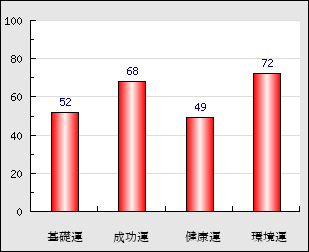 環境運 家庭や職場等での援助運・環境運を司ります。これが良いと配偶者や子供・職場の同僚などから助力が得られやすく、悪いと波乱・不和・孤独などがあります。 72点