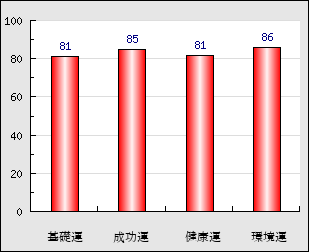 環境運 家庭や職場等での援助運・環境運を司ります。これが良いと配偶者や子供・職場の同僚などから助力が得られやすく、悪いと波乱・不和・孤独などがあります。 86点