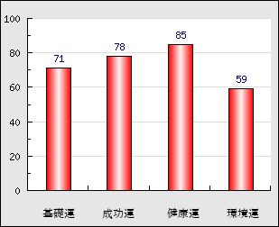 環境運 家庭や職場等での援助運・環境運を司ります。これが良いと配偶者や子供・職場の同僚などから助力が得られやすく、悪いと波乱・不和・孤独などがあります。 59点