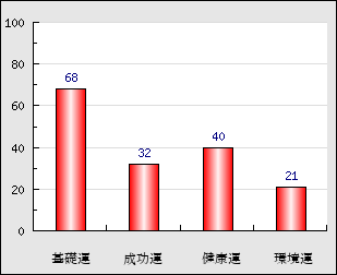 成功運 目的に対する成功運の強さをあらわします。この点数が高いほど自分の思い通りに成功し、逆に悪いと逆境・批判・障害などに苦心します。 32点