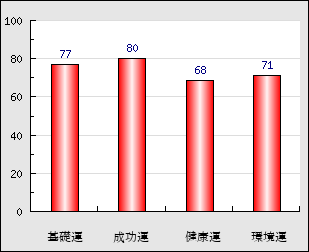 成功運 目的に対する成功運の強さをあらわします。この点数が高いほど自分の思い通りに成功し、逆に悪いと逆境・批判・障害などに苦心します。 80点