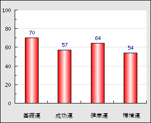 環境運 家庭や職場等での援助運・環境運を司ります。これが良いと配偶者や子供・職場の同僚などから助力が得られやすく、悪いと波乱・不和・孤独などがあります。 54点