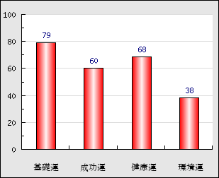 環境運 家庭や職場等での援助運・環境運を司ります。これが良いと配偶者や子供・職場の同僚などから助力が得られやすく、悪いと波乱・不和・孤独などがあります。 38点