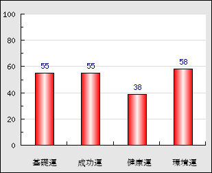 環境運 家庭や職場等での援助運・環境運を司ります。これが良いと配偶者や子供・職場の同僚などから助力が得られやすく、悪いと波乱・不和・孤独などがあります。 58点