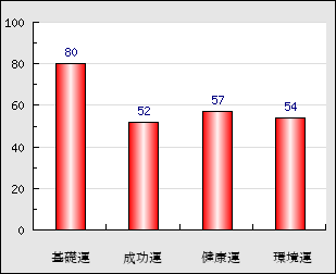 成功運 目的に対する成功運の強さをあらわします。この点数が高いほど自分の思い通りに成功し、逆に悪いと逆境・批判・障害などに苦心します。 52点